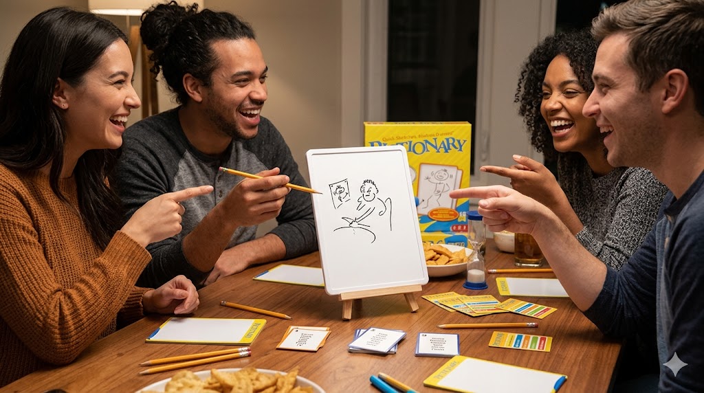 Dette populære selskabsspil handler om at kommunikere gennem tegninger, hvor hold kæmper mod uret for at gætte ord baseret på visuelle spor uden brug af bogstaver eller tale. I denne omfattende guide gennemgår vi alt fra de grundlæggende Pictionary regler og nødvendigt udstyr til avancerede teknikker, der kan sikre dit hold sejren. Vi dækker både den klassiske brætspilsudgave og moderne variationer, så du er fuldt udrustet til at være den ultimative tegner, uanset om du er kreativ ekspert eller kun kan tegne tændstikmænd.
